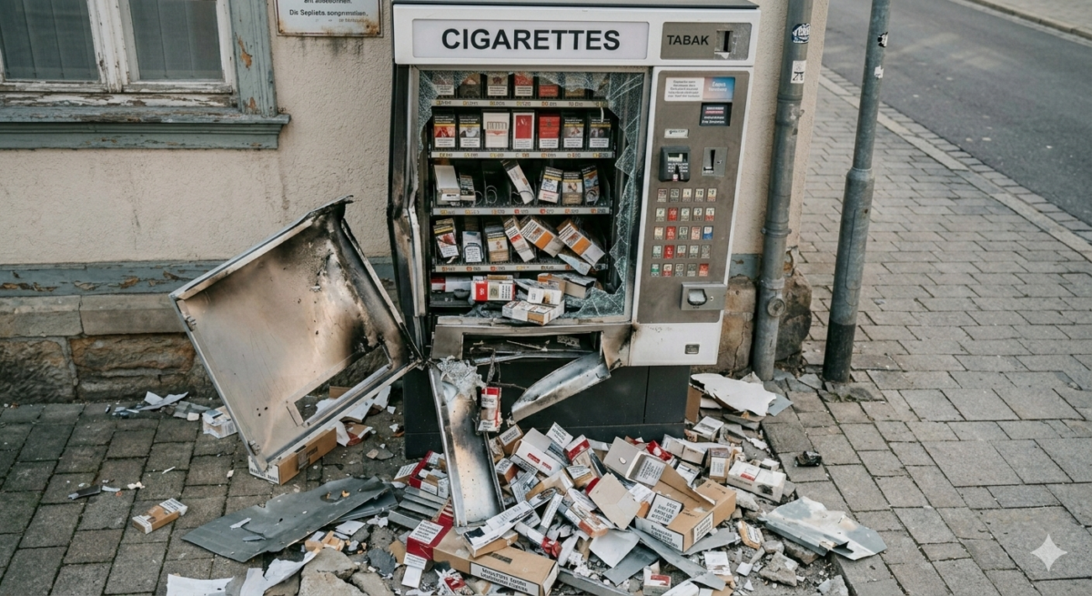 Die Kriminellen platzierten den Sprengkörper direkt im Ausgabeschacht des Automaten. Das Ziel war klar: Durch die Wucht der Detonation wollten die Täter an die Tabakwaren und die Geldkassetten im Inneren gelangen. Doch der Plan schlug fehl. Zwar verursachte die Explosion einen erheblichen Sachschaden von mehreren hundert Euro, der massive Automat hielt dem Angriff jedoch stand – die Täter gingen leer aus.